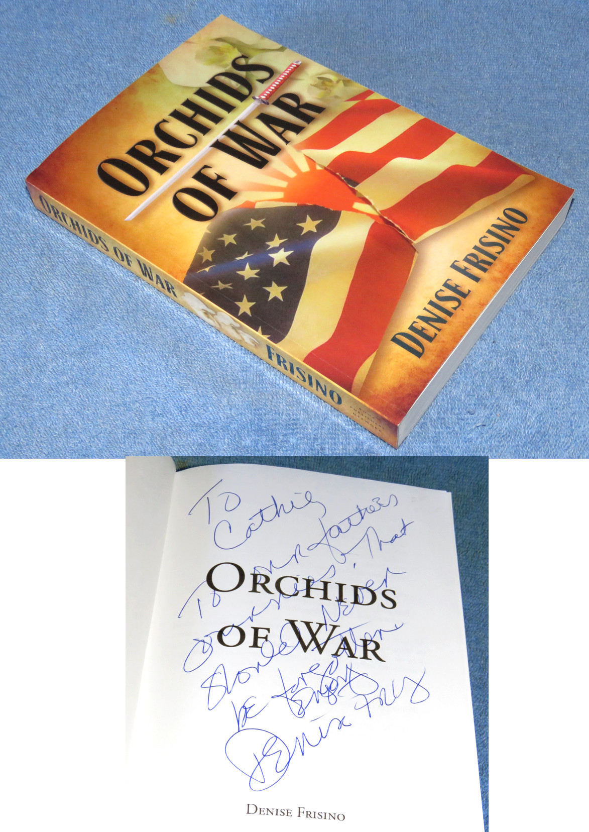 | 17538 | Frisino, Denise | Orchids Of War | Book Publishers Network | Very good. | A long inscription with signature on the title page. Historical fiction of Japanese spies before WW2. | Historical fiction, Japan, WW2 | $30 |