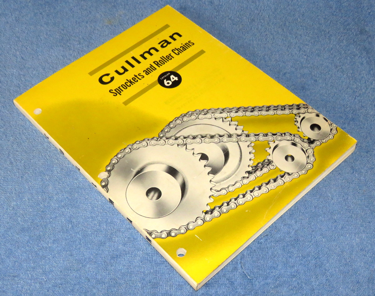 | 17518 | Cullman Wheel Company | Cullman Sprockets and Roller Chains Catalog 64 | Cullman Wheel Company | Good. Crease on the front cover | 8.t x 11 inches, Sprockets and roller chains, many photos, tables and other information | Trade catalog, Cullman Wheel Company | $20 |
