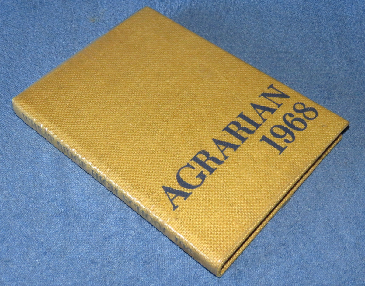 | 17553 | Staff | Agrarian 1968 Wheat Ridge High School | Wheat Ridge High School | Very good. Plastic cover has a few blemishes. No autographs | 8 x 11 inches, Wheat Ridge High School, Wheat Ridge, Colorado. | High School Yearbook, Wheat Ridge High School, Colorado | $75 |