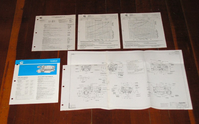 | 13331 | Cummins Engine Company | Cummins VTA-903-M Marine Diesel | Cummins Engine Company | Good. Paperclip marks and light soiling. | 8.5 x 11 inches, three hole punched pages on the Cummins VTA-903 Marine engine with tables, specifications and a signed, certified engine performance graph. An installation diagram folds out to 21.5 inches by 14.5 inches. | Cummins Engine Company, Cummins VTA-903-M, automotive, ephemera | $20 |