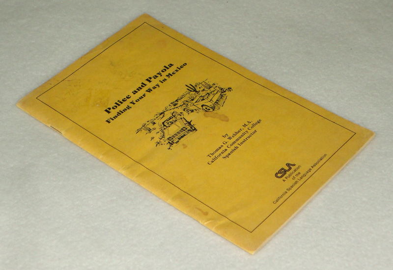 | 14188 | Webber, Thomas G., M.A. | Police and Payola Finding Your Way in Mexico | CSLA | Good. The front cover has soiling. Both covers have very light rippling. Occasional light soiling inside. | 1988 dealing with police in Mexico. There are b&w photos and illustrations and Spanish language help. | Mexico, travel, Mexican Payola | $20 |