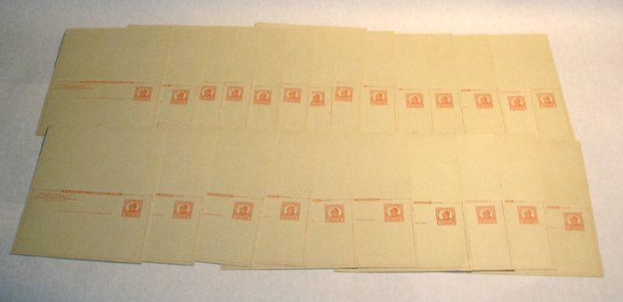 | 13201 | U. S. Postal Service | Postal Reply Cards, Scott UY12, (24 cards) | U. S. Postal Service | Good. 14 cards are mint, unsevered. 10 cards have a minor bump from a rubberband and one card has a faint crease. | Unused, unfolded, unsevered 3 cent reply cards, ScottUY12 | Philately, ephemera, Scott UY12, Postal Reply | $40 |