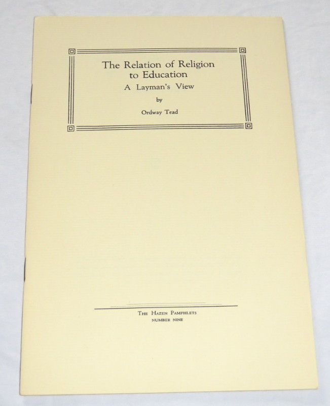 | 17159 | Tead, Ordway | The Relation of Religion To Education A Layman's View | The Hazen Pamphlets | Good. | The Hazen Pamphlets Number Nine | Education, religion | $20 |