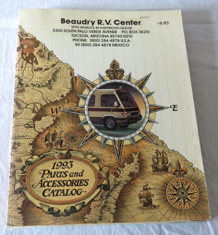 | 17299 | Beaudry R.V. Center | 1993 Parts and Accessories Catalog | Beaudry R.V. Center | Good. Light shelf wear. Staple on the front cover. | 8.25 x 10.75 inches with many photos, diagrams and other information. | Recreation Vehicle, vintage rv, trade catalog | $25 |