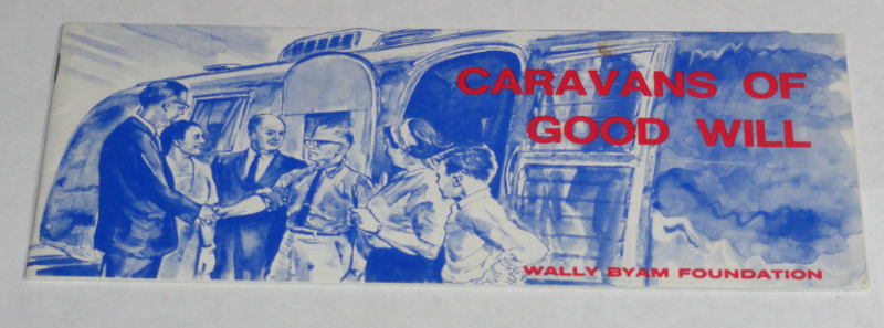 | 14674 | Wally Byam Foundation | Caravans Of Good Will | Wally Byam Foundation | Good. Small stain on front cover. Light soiling. | 9 x 4 inch blue tone brochure about the Wally Byam Foundation, circa 1967. Artist illustrations. | Airstream, recreation vehicle, Wally Byam Foundation, ephemera | $20 |