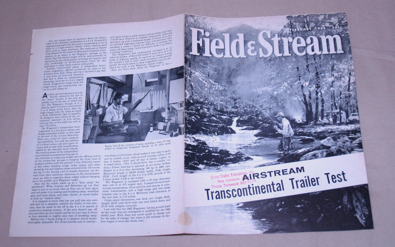 | 12362 | Parry, Jack | Trailer Trek to Alaska | Field and Stream | Good. Edges of the pages are worn and chipped. | A fun article from Field and Stream Magazine with wonderful photography about pulling trailers to Alaska in the late 1950s. | Alaska, recreation vehicles. | $20 |