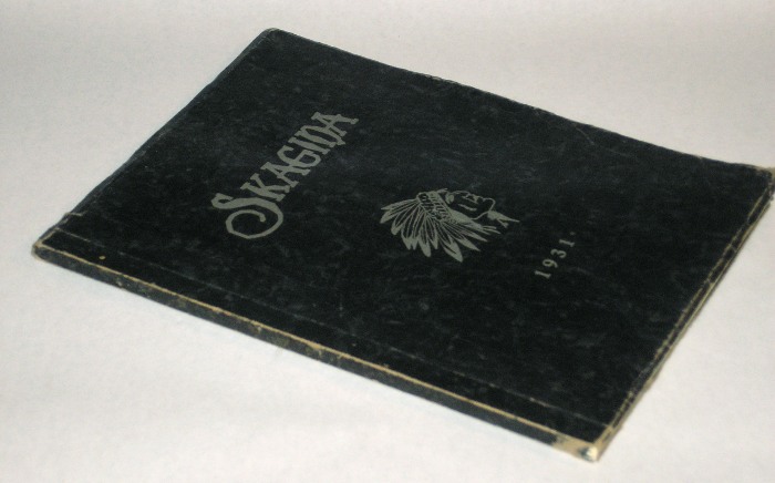 | 13239 | anon | Skagina Indian Number 1931 | Students Of Mount Vernon High School | Good. Wear, soiling and creasing on the covers. | 7.5 x 10.5 inches, high school yearbook, Mt. Vernon, Washington State. There are many b&w photos and illustrations. | High School Yearbook, Mt. Vernon, Washington State, Pacific Northwest | $30 |