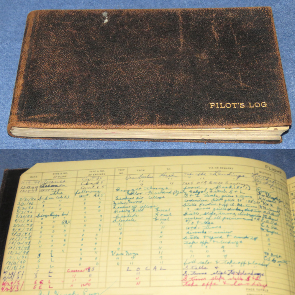 | 17603 | Anon. | Pilot Log Book | Capt. Wilbur H. Buchanan | Good. Worn amd staomed limp leather covers. Page corners clipped. "wan wing low" written on front and bottom page edges. | Only the first 30 pages are used. November 1949 in California, flying an Aeronica, to Washington state in Pipers and Cessnas, the last flight being in December of 1974. | Aviation, pilot log, California, Washington | $30 |