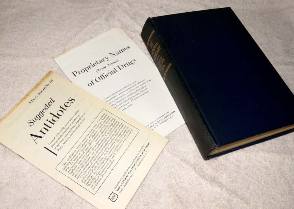| 17795 | American Pharmaceutical Association | The National Formulary Tenth Edition National Formulary X, A.Ph.A. Manual No. 101 and Proprietary Names of Official Drugs | J. B. Lippincott Company | Good. No dust wrapper | A packet inside the back cover includes the A.Ph.A. Manual No. 101, "Suggested Antidotes", and a 46 page "Proprietary Names (Trade Names) of Official Drugs" | Medicine, National Formulary, Pharmacy, prescription drugs | $60 |