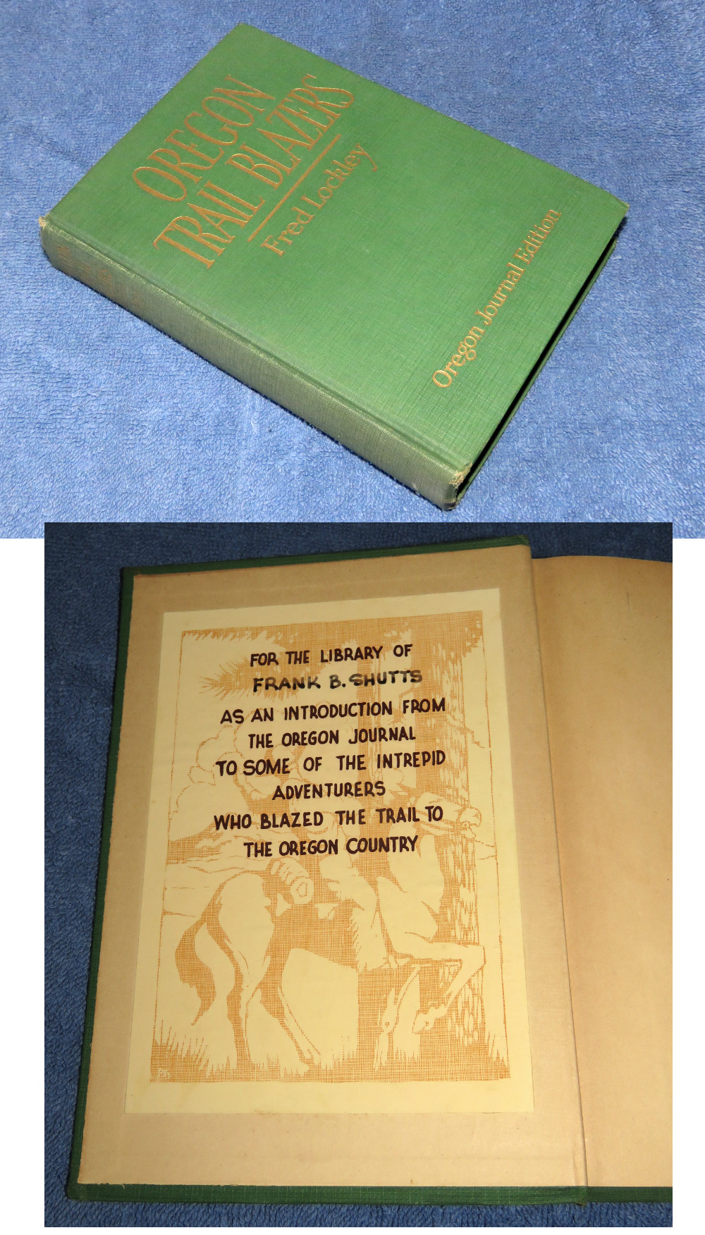 | 17749 | Lockley, Fred | Oregon Trail Blazers | The Knickerbocker Press | Good. A bit of shelf wear and soiling. No dust wrapper. Book plate. | Oregon history. The book plate is personalized from The Oregon Journal. | Oregon, History | $30 |