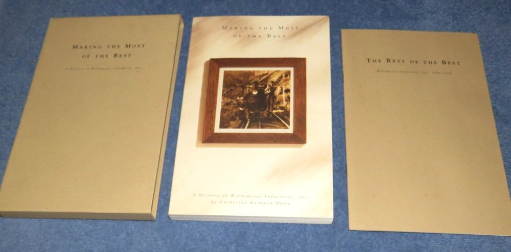 | 17674 | Dunn, Catherine Baldwin | Making the Most Of the Best A History of Willamette Industries, Inc. | Willamette Industries | Very good. The box has creases and some wear. The Swindells book has rusty staples. | A "boxed" set with "The Rest of the Best" by William Swindells. Both volumes have book plates. There are many b&w photos and illustrations. | Corporate history, Willamette Industries, Oregon | $25 |