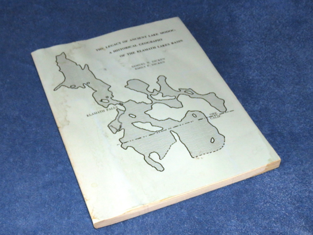 | 17779 | Dicken, Samuel N. and Emily F. Dicken | The Legacy Of Ancient Lake Modoc: A Historical Geography Of The Klamath Lakes Basin Oregon And California | Self-published | Fair. Ugly beveridge stains on covers and pages. Doesn't affect readibility. | 8.5 x 11 inches, Lake Modoc, geography, Klamath Lakes. There are b&w photos, maps and references. | Geology, Oregon, California, Klamath Lakes | $25 |
